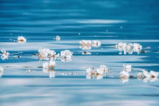 每年8月,海菜花盛开的季节,泸沽湖便宛若繁星坠落水面,如梦似幻。洁白的花瓣,鵝黃色的花蕊,在湖面摇曳,水波荡漾,光影交错,犹如一幅流动的莫奈油画。