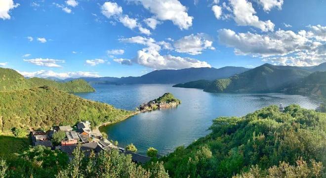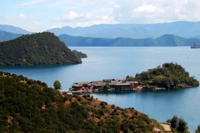 其中,云南一侧的黑瓦吾岛、里无比岛和里格岛,成为湖中最具观赏和游览价值的三个景点,被誉为“蓬莱三岛”。黑瓦吾岛位于湖心,距离湖岸落水村2500米,岛上树术葱笼,百鸟群集,是南来北往的候鸟、野鸭的栖息之处,也是昔日永宁土司阿云山总管的水上行宫,美国学者洛克也曾旅居于此。