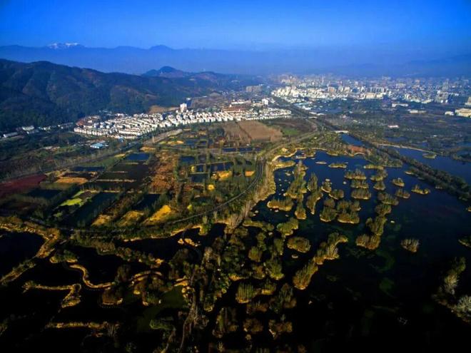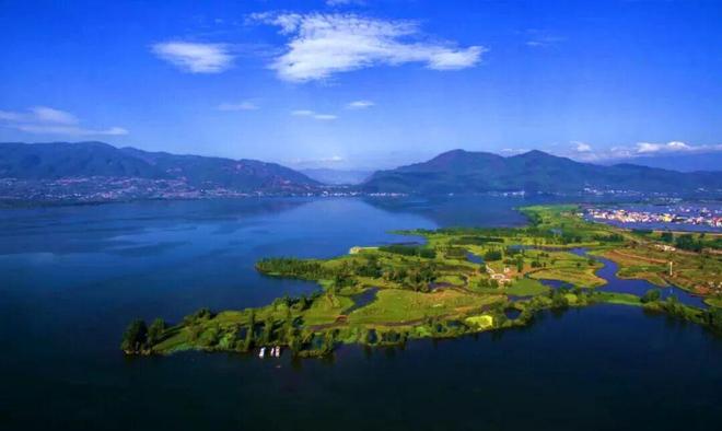 这几乎是云南高原大湖的标准照,山色空朦、水光潋滟、水鸟翔集、村郭城邑相依,满满全是高原断陷湖的独特气质。